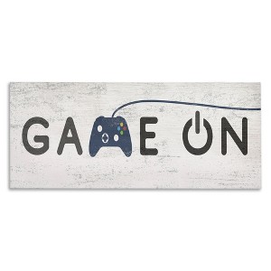 Stupell Industries Game On Video Gamer Phrase Blue Vintage Controller Canvas Art, 40" x 17"
