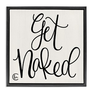 Stupell Industries Get Naked Curly Script Floating Frame Canvas Art, Black, 25" x 25"