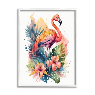 Stupell Industries Glam Flamingo Pink Splatter Rose Floral Royal Crown Framed Giclee Art, White, 11" x 14"