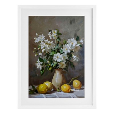 A digitally printed paper is framed with a white mat under durable PETG plastic. The bevel cut mat is made of paper pulp mat board. The real wood frame with wrapped finish includes a pre-installed sawtooth hanger for easy hanging.