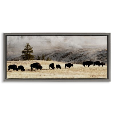 Stupell Industries Grazing Bison Foggy Countryside Framed Giclee Art