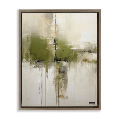 Stupell Industries Green & Tan Brush Strokes Floating Frame Canvas Art