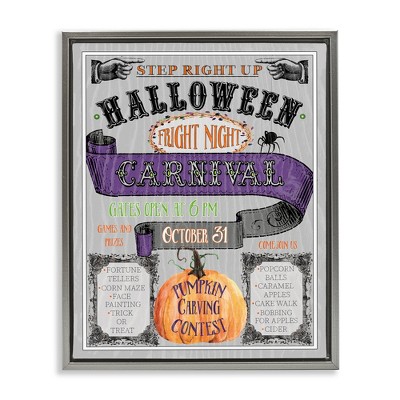 Stupell Industries Halloween Fright Night Carnival Sign Floating Frame Canvas Art, Black, 17" x 21"