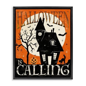 Stupell Industries Halloween Is Calling Haunted House Floating Frame Canvas Art, Black, 25" x 31"