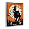 Stupell Industries Halloween Is Calling Haunted House Floating Frame Canvas Art, Gray, 25" x 31"