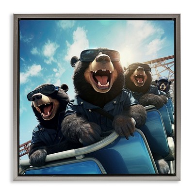 Stupell Industries Happy Bear in Bathtub Floating Frame Canvas Art, Gray, 25" x 25"