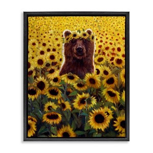 Stupell Industries Happy Bear Sunflower Field Floating Frame Canvas Art