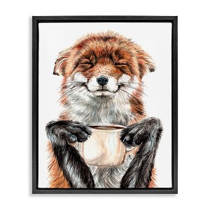 Stupell Industries Happy Fox with Coffee Floating Frame Canvas Art