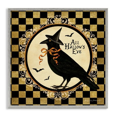 Stupell Industries Happy Halloween Cat & Pumpkin Framed Giclee Art, Gray, 17" x 17"