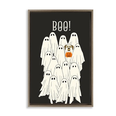 Stupell Industries Happy Halloween Floral Pumpkin Floating Frame Canvas Art, Brown, 17" x 25"