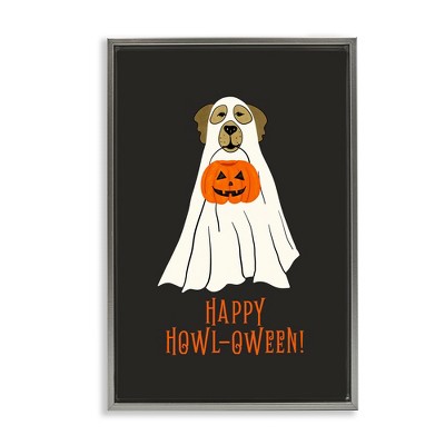 Stupell Industries Happy Halloween Floral Pumpkin Floating Frame Canvas Art, Gray, 17" x 25"