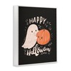 Stupell Industries Happy Halloween Smiling Ghost Pumpkin Framed Giclee Art, White, 11" x 14"