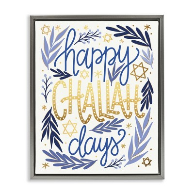 Stupell Industries Happy Hanukkah Botanical Menorah Floating Frame Canvas Art, Gray, 25" x 31"