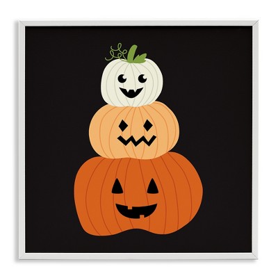 Stupell Industries Happy Jack-o-Lanterns on Black Framed Giclee Art, Black, 17" x 17"
