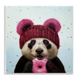 Stupell Industries Happy Panda Bear with Donut Wall Plaque Art, 12" x 12"