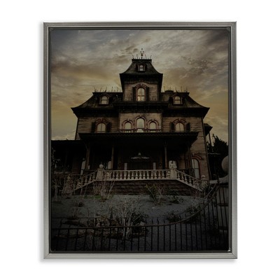Stupell Industries Haunted House Landscape Floating Frame Canvas Art, Gold, 17" x 21"