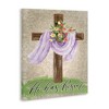 Stupell Industries He Has Risen Spring Floral Cross Brown Damask Pattern Canvas Art