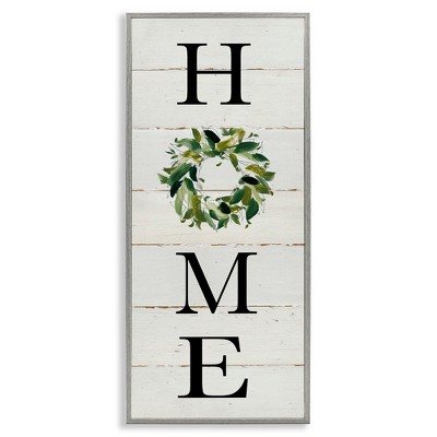 Stupell Industries Home Vertical Phrase Green Leaf Wreath Family Typography Framed Giclee Art, Black, 10" x 24"