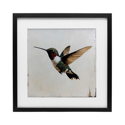 Stupell Industries Hummingbird over Distressed Rustic Framed Print Under Glass Art, White, 16" x 16"