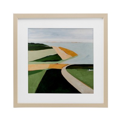 Our Framed Print Under Glass is a modern way to display art with a crisp, clean finish. A digitally printed paper is framed with a white mat under durable PETG plastic. The bevel cut mat is made of paper pulp mat board. The frame is constructed from real wood with a wrapped finish. It includes a pre-installed sawtooth hanger for easy hanging. Available in black, birch, gray and white finishes.