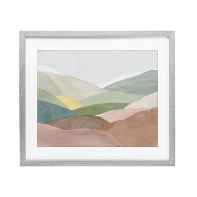 A digitally printed paper is framed with a white mat under durable PETG plastic. The bevel cut mat is made of paper pulp mat board. The wood look frame includes a pre-installed sawtooth hanger for easy hanging.