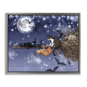 Stupell Industries Joyriding Cats on Broom Floating Frame Canvas Art, Gray, 21" x 17"