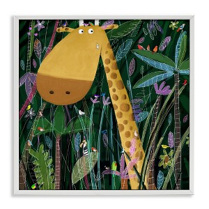Stupell Industries Kids' Polka Dot Giraffe Jungle Safari Brush Framed Giclee Art