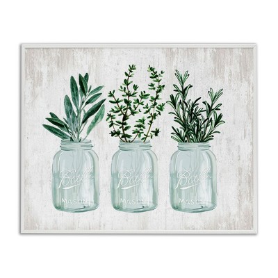 Stupell Industries Kitchen Herb Trio Garden Spices Country Glass Jars Framed Giclee Art, Gray, 20" x 16"