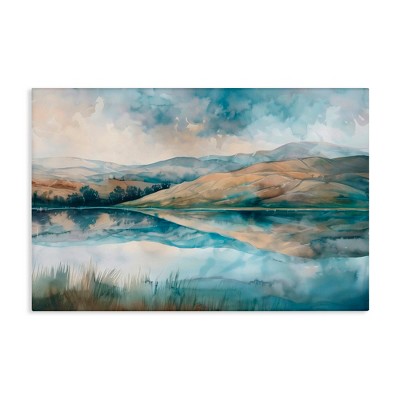 Stupell Industries Lake Reflecting Rolling Hills Floating Frame Canvas Art