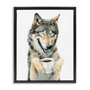 Stupell Industries Laughing Wolf with Coffee Floating Frame Canvas Art