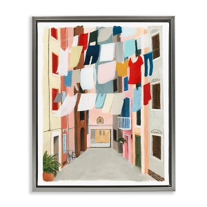 Stupell Industries Laundry Clothesline Between Apartments Floating Frame Canvas Art