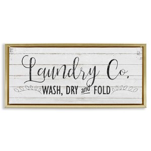 Stupell Industries Laundry Wash Dry & Fold Floating Frame Canvas Art, Gold, 31" x 14"