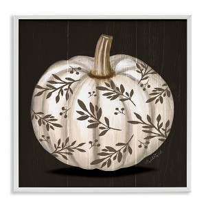 Stupell Industries Leaf Patterned Fall Pumpkin Framed Giclee Art, White, 24" x 24"