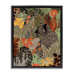 Stupell Industries Leopard in Jungle Pattern Floating Frame Canvas Art