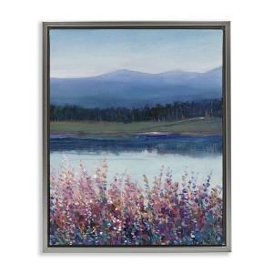 Stupell Industries Lilacs By Lake Mountain Landscape Floating Frame Canvas Art