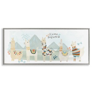 Stupell Industries Llama Squad Whimsical Patterns Framed Giclee Art, Gray, 24" x 10"