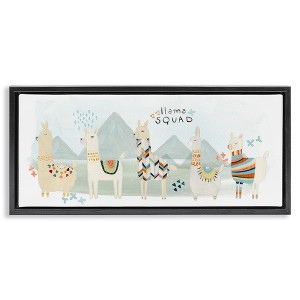 Stupell Industries Llama Squad Whimsical Patterns Floating Frame Canvas Art, Black, 25" x 11"