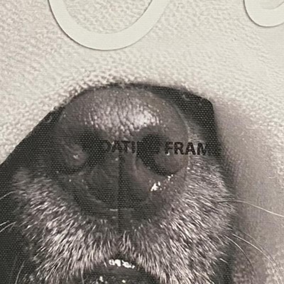 Do not buy this! Ordered 2 thinking one was damaged but both came with typed words “floating frame” in the center of the dogs nose.