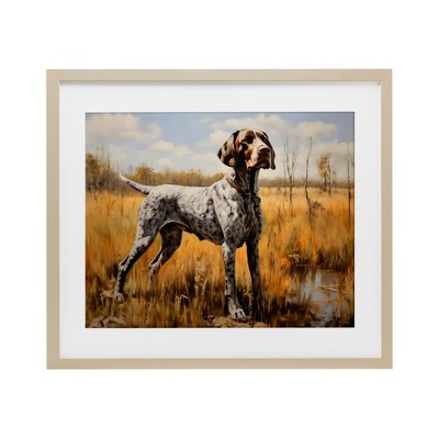 A digitally printed paper is framed with a white mat under durable PETG plastic. The bevel cut mat is made of paper pulp mat board. The wood look frame includes a pre-installed sawtooth hanger for easy hanging.