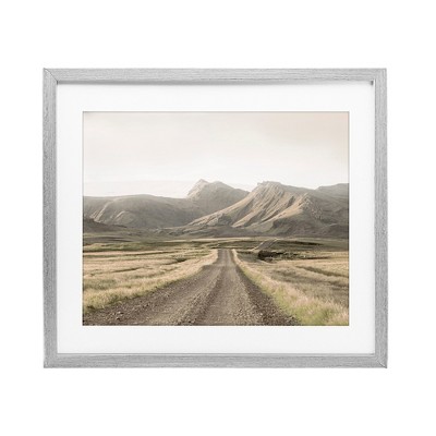 A digitally printed paper is framed with a white mat under durable PETG plastic. The bevel cut mat is made of paper pulp mat board. The wood look frame includes a pre-installed sawtooth hanger for easy hanging.