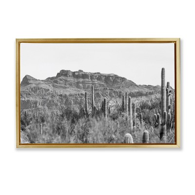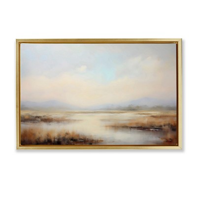 Stupell Industries Misty Adirondack Mountains Floating Frame Canvas Art, Gold, 25" x 17"