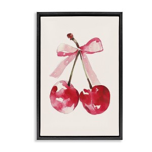 Stupell Industries Mod Cherries Tied in Bow Floating Frame Canvas Art
