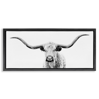 Stupell Industries Modern Longhorn Cattle Gazing Floating Frame Canvas Art, Gray, 31" x 14"