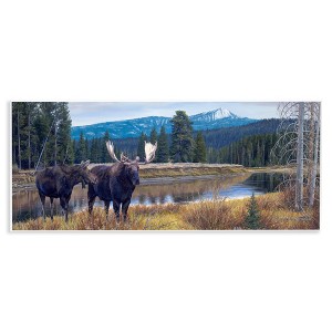 Stupell Industries Moose in River Mountain Scene Wall Plaque Art, 17" x 7"