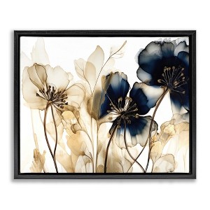 Stupell Industries Navy & Gold Flowers Floating Frame Canvas Art