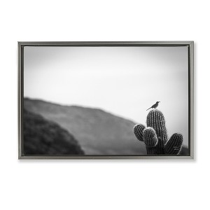 Stupell Industries On Guard Bird & Cactus Floating Frame Canvas Art