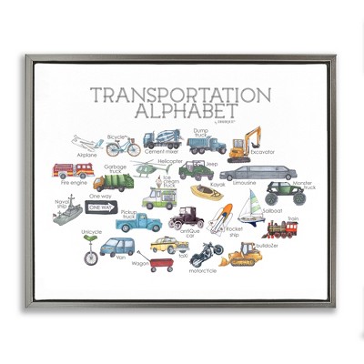 Stupell Industries Outer Space Educational Alphabet Kids Learning Chart Floating Frame Canvas Art, Gray, 21" x 17"