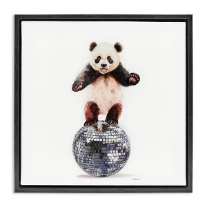 Stupell Industries Panda Balancing on Disco Ball Floating Frame Canvas Art