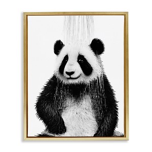 Stupell Industries Panda Bathroom Splash Floating Frame Canvas Art, Gold, 17" x 21"