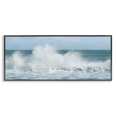 Stupell Industries Panoramic Tsunami Wave Splashing Framed Giclee Art, Black, 24" x 10"